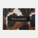 Welcome guests to your home with this rustic western themed personalised welcome mat featuring a tri-colour cowhide pattern in black, brown and white. It adds a casual laid-back vibe to your home decor and has a ranch or farmhouse barn look. A text template is included to personalise with your name or other text. This item is a wonderful choice for cowboys and cowgirls everywhere! The faux cowhide pattern is a digital print and not actual fur or hide.