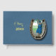 A unique Western-style design for your graduation guestbook. The design features a dark background with a simulated leather look. A horseshoe frames your photo. The photo and text are easily changed by using the template. Selecting “Personalize this design” offers you several edit options to easily change the text (wording, plus type font, color, size, position) and to edit the design elements. You may also want to scroll down to the section “Transfer design to a product” for a few suggestions about other items this design can be used on.