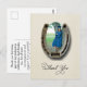 A distinctive Western-style graduation Thank You postcard. On the front, the ivory textured background holds a large horseshoe that frames your photo. The photo and text are easily changed by using the template. The "Thank You" on the front of the card is actually a graphic image but is editable (size and placement) with the Design Tool. Selecting “Personalize this design” offers you several edit options to easily change the text (wording, plus type font, color, size, position) and to edit the design elements, if desired. You may also want to scroll down to the section “Transfer design to a product” for a few suggestions about other items this design can be used on.