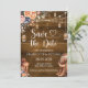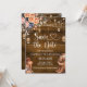 Announce your big day in bold country style with this stunning rustic western Save the Date wedding card! Featuring rich navy blue and peach floral arrangements, glowing mason jar lanterns, delicate string lights, cowboy boots, and a classic cowboy hat on a warm dark wood background. A dramatic and romantic design perfect for fall country weddings, western ranch ceremonies, and any celebration with a bold and beautiful country flair!