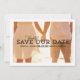 This rustic, whimsical save the date postcard features the text "Kindly save our date" in the middle of the card, overlaying a large photo. Customise with your wedding details and favourite photo. Additional photos and text can be added to the back of the card.