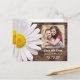 Rustic, bold white daisy flower and woodgrain photo wedding save the date postcard. Bold large white daisy with yellow centre paired with your engagement photo and dark brown woodgrain wood background. Additional wording on the back as well.