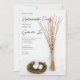 Celebrate the mum-to-be with the charming Rustic White Eggs Hatchelorette Party Invitation. This nature inspired design captures a cosy, rustic chic aesthetic with its warm outdoorsy details. The front features a beautifully styled photograph of a wooden bird’s nest filled with delicate white speckled eggs, paired with a vintage glass milk bottle adorned with pussy willow twigs and soft white satin. The combination of natural textures and soft tones makes this invitation a wonderful choice for a gender neutral baby shower, keeping the focus on timeless simplicity and spring inspired elegance.