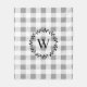 Rustic white farmhouse plaid and grey with black wreath and monogram accents.