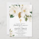 Rustic white floral magnolia first communion invitation