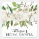 Pretty bridal shower favour seal featuring watercolor white flowers on a classic white background
