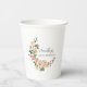 Soft ivory white roses and bright pink buds create a beautifully rustic floral open wreath. Sage green eucalyptus to the floral bloom. The birthday woman's name is written in a large script font. 100th Birthday follows. This birthday paper cup is part of the Rustic Ivory White Rose collection. It contains many DIY templates that let you quickly create invitations and party supplies.