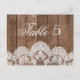 Rustic White Lace and Wood Wedding Table Number Postcard