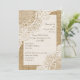 Elegant rustic white lace on burlap shabby chic wedding couples shower invitation featuring white lace on linen natural burlap or hessian that covers two corners of a white rectangle with beige burlap border. Text in brown. Note that lace and burlap are all “printed on” and not real fabric. This elegant, shabby chic sophisticated and romantic design with a rustic essence is part of a wedding set and is perfect for a country chic or western spring, summer or fall/autumn wedding with a neutral colour palette.