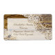 Elegant rustic white lace on wood wedding label featuring white lace on brown wood that covers two corners of a white rectangle with brown wood border. Text in brown. Note that lace and wood are all “printed on” and not real materials. This elegant, shabby chic sophisticated and romantic design with a rustic essence is part of a wedding set and is perfect for a country chic or western spring, summer or fall/autumn wedding. It will also work perfectly for a wedding with a western barn theme.
