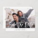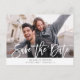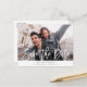 simple photo wedding save the date card design with white lettering. Feel free to personalise the photo and text.