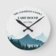 Rustic White Wood Custom Family Name Lake House Round Clock