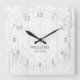 Rustic White Wood Farmhouse Family Name Square Wall Clock