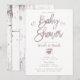 Rustic White Wood Rose Gold Pink Baby Shower Invitation