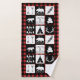 Rustic bath towel set in a wilderness animals and lumberjack plaid design in red, black, and white. These towels would look great in a boy's bathroom!