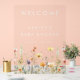 This design combines elegance and whimsy, pairing minimal modern text with a row of delicate watercolor wildflowers perfect for boho-inspired baby showers.