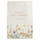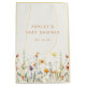 This design combines elegance and whimsy, pairing minimal modern text with a row of delicate watercolor wildflowers perfect for boho-inspired baby showers.
