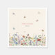 This is an elegant and bohemian wedding napkin. The design features a colourful and summery field of delicate wildflower florals in pretty shades of blue, terracotta, pink, rust, purple and yellow on top of a creamy ivory background. The butterflies and bees add the finishing whimsical and pretty touch.