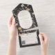 AVAILABLE WITH OR WITHOUT A QR CODE TO SCAN. This design features a soft wildflower frame around a cream oval on a soft black background. Add a QR code URL to your invitation so that gusts can quickly access your wedding Website for details, directions, menu options, and more, or add your gift registry Web URL. Personalised All-In-One invitations are a unique combination of both a beautifully printed custom invitation with an easy to tear off perforated RSVP postcard. And they are so easy to use! You simply fold, then seal the back flap with the three included clear stickers, and mail. And when your guests receive your custom invite, they just tear the perforated RSVP Card off and drop it back in the mail to you!