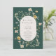 This bridal shower brunch invitation features an elegant emerald green background, which exudes a sense of sophistication and richness. The deep green hue creates a captivating backdrop that sets the tone for a memorable celebration. At the centre of the invitation, an oval-shaped text frame stands out, providing a graceful focal point. The frame is beautifully crafted, exuding a sense of refinement and elegance. Its shape adds a touch of uniqueness, capturing the attention of the recipients. Surrounding the text frame, delicate and rustic watercolor wildflowers are artistically arranged. These charming blooms, depicted in soft hues, evoke a sense of natural beauty and tranquillity. The watercolor technique gives them a gentle and ethereal appearance, enhancing the overall romantic ambiance of the invitation. The combination of the emerald green background, the oval text frame, and the rustic watercolor wildflowers creates a visually stunning invitation that exudes elegance and a touch of whimsy. Created by Simply Farmhouse Press.