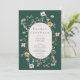 This bridal shower luncheon invitation features an elegant emerald green background, which exudes a sense of sophistication and richness. The deep green hue creates a captivating backdrop that sets the tone for a memorable celebration. At the centre of the invitation, an oval-shaped text frame stands out, providing a graceful focal point. The frame is beautifully crafted, exuding a sense of refinement and elegance. Its shape adds a touch of uniqueness, capturing the attention of the recipients. Surrounding the text frame, delicate and rustic watercolor wildflowers are artistically arranged. These charming blooms, depicted in soft hues, evoke a sense of natural beauty and tranquillity. The watercolor technique gives them a gentle and ethereal appearance, enhancing the overall romantic ambiance of the invitation. The combination of the emerald green background, the oval text frame, and the rustic watercolor wildflowers creates a visually stunning invitation that exudes elegance and a touch of whimsy. Created by Simply Farmhouse Press.