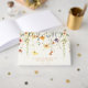 This design combines elegance and whimsy, pairing minimal modern text with a row of delicate watercolor wildflowers.