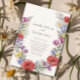 You will love this original watercolor artwork created for you special day. It features palms and ferns and pretty wild flowers in red, purple, yellow, green and blue arranged in a wreath formation on a beige background. Easy to customise with your own information.