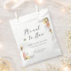 Custom-designed wedding favour bags featuring watercolor wildflower and bee design.