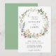 This invitation features a wreath of rustic multicolored wildflowers. Perfect for spring and summer outdoor and boho-inspired weddings.