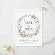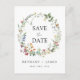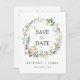 This design features a wreath of rustic multicolored wildflowers. Perfect for spring and summer outdoor and boho-inspired weddings.