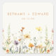 This design combines elegance and whimsy, pairing minimal modern text with a row of delicate watercolor wildflowers perfect for boho-inspired weddings.