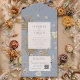 Capture the charm of nature with our rustic boho wedding invitation, featuring delicate clusters of dried, pressed wildflowers and ferns arranged on a dusty blue background. Cream-toned text boxes offer a soft contrast for your details, framed by the organic beauty of botanical textures. With the couple's initials elegantly displayed at the top, this design brings a romantic, earthy feel to your special day—perfect for weddings with a natural, whimsical touch. Created by Simply Farmhouse Press.
