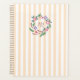 This fully customisable planner design features a rustic hand drawn wildflower wreath encasing a monogram for personalisation over soft pink and white striped background. The back of the planner also has a striped background with the option to add the full name with a small wildflower motif for an extra special touch, making both the front and the back interesting and personalised.