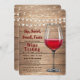 Rustic Wood Wine Tasting Wine Glass String Lights Invitation