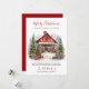 This watercolor rustic winter barn Christmas card with a festively decorated barn sprinkled with snow and surrounded pine trees would be perfect to send to friends and family. The message is customisable and the templates are super easy to use. In seconds you can see your unique Christmas cards.