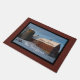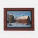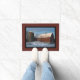 Personalise the charming Rustic Wintery Barn Happy Holidays Doormat with your family name. This rustic chic custom country Christmas welcome mat features a digitally painted farm photograph of a rustic red wooden barn and silo covered with white winter snow.
