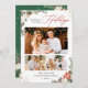 Rustic Winter Botanical Floral Script 3 Photo Holiday Card