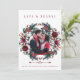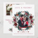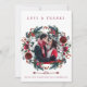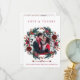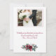 Winter rustic wedding thank you photo card with white and red burgundy trendy watercolor peony roses flowers and blooms wreath with seasonal pine hunter green fir branches and holly berries over a clear white background.++++++++ Personalise it with 2 photos (one square on the front side and one landscape on the reverse), with your signature and text on front and back! +++++++++++++ An elegant way of giving thanks and sending love for a winter Christmas wedding or sending greetings as a newlyweds couple.