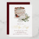 Elegant, foil holiday party invitation featuring a watercolor illustration of a frosted layer cake with red holly berries and pine greenery. "Holiday Party" is displayed in a beautiful gold foil calligraphy script. Personalise the festive holiday party invites with your party details in cranberry lettering.