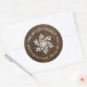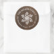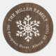 Affordable custom printed round return address stickers personalised with your family name and return address. This rustic modern holiday design features a white snowflake on a faux wood background. Use the design tools to edit text fonts and colours to further customise your own unique holiday return address labels.
