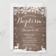 Rustic Winter Deer Baptism Invitation. White Snowflake. Boy or Girl Baptism. First Communion. Christening. Child Dedication. Rustic Wood Background. Country Vintage Retro Barn. For further customisation, please click the "Customise it" button and use our design tool to modify this template.