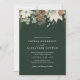 Rustic Winter flowers watercolor wedding invitation. Flowers, eucalyptus, pine cones and pine branches on the forest green background. Customise this design with your personal info and your initial on the back side.