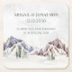 Customizable coasters to match your rustic winter wedding theme with a snow covered country mountain scene.