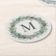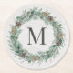 Rustic Winter Greenery Monogram Initial Wreath Round Paper Coaster