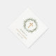 These simple and elegant gender neutral Baptism napkins feature a botanical wreath of watercolor winter greenery, and a rustic wood look cross on a white background.