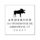 Rustic elegant return address design features a wintry moose illustration, with your family name and return address details in classic lettering.