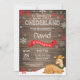 Rustic Winter Onederland Deer 1st Birthday Invitation. Red and White Snowflake. First Birthday. Boy or Girl 1st Bday Invite. Rustic Wood Background. Black and White. For further customisation, please click the "Customise it" button and use our design tool to modify this template.