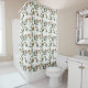 Beautiful rustic forest trees with a bear and fox pattern shower curtain set on a neutral white background. Visit our shop to view our matching bath decor items.
