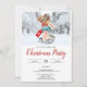 Rustic Christmas party invitation with modern typography and a sled carrying Christmas wishes of love, peace, joy and hugs.