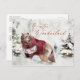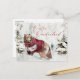 A unique imaginative Christmas card with rustic appeal, this design has a winter watercolor snow scene with a wild bear wearing a warm woollen sweater out in the cold. A thin handwritten script type face spells out "Winter Wonderland" in cranberry red with a look of vintage handwriting. For your convenience, a sample text template on the back of the card may be personalised with your return address, your desired holiday greeting and your name(s).